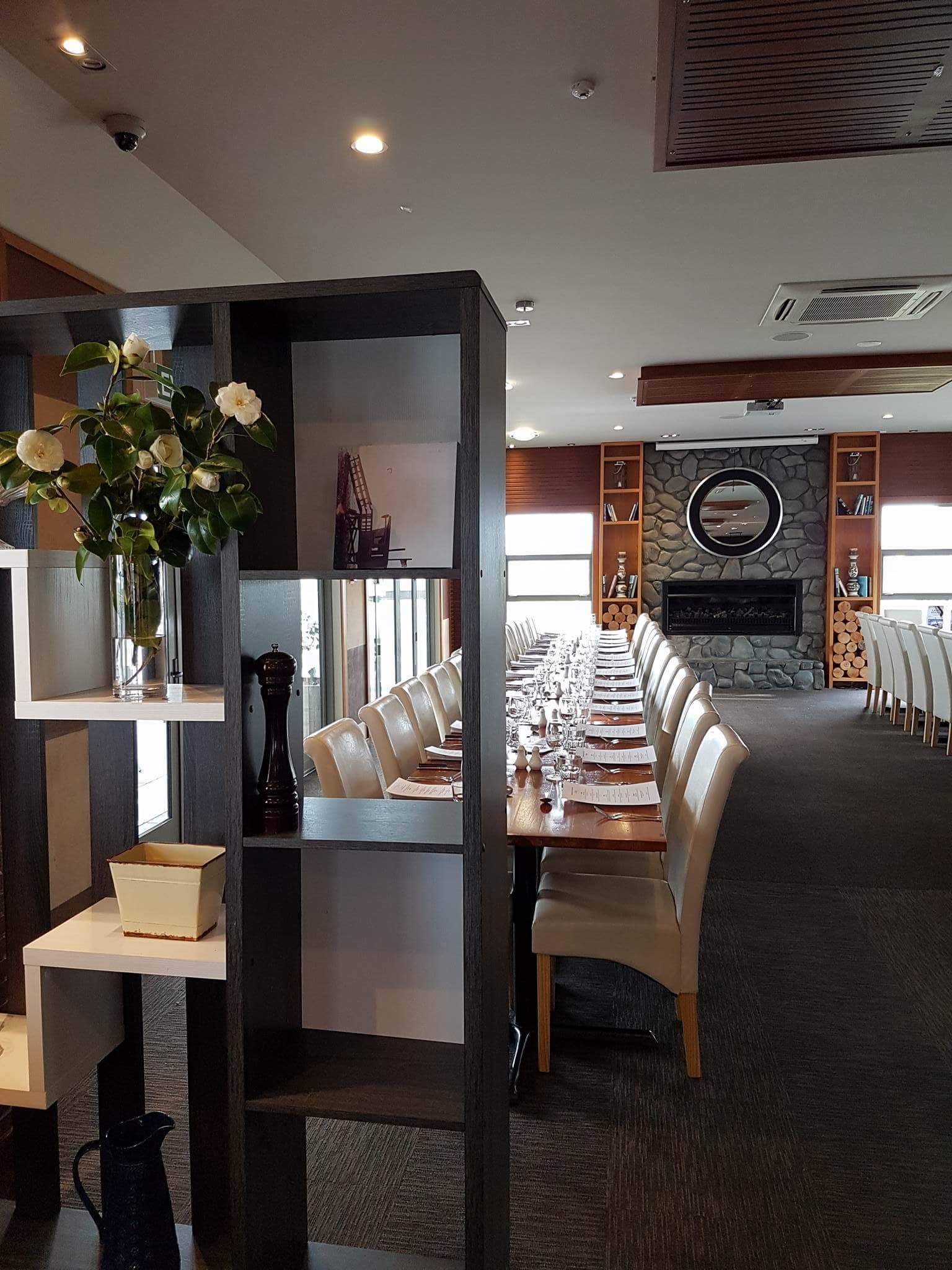 The deck offers sweeping views of the majestic lake, the surrounding estate and the Southern Alps. It really is the perfect location for your pre-dinner beverage and canapé service. You may reserve a specific part of the dining area, one of the private boardrooms or even the whole restaurant.